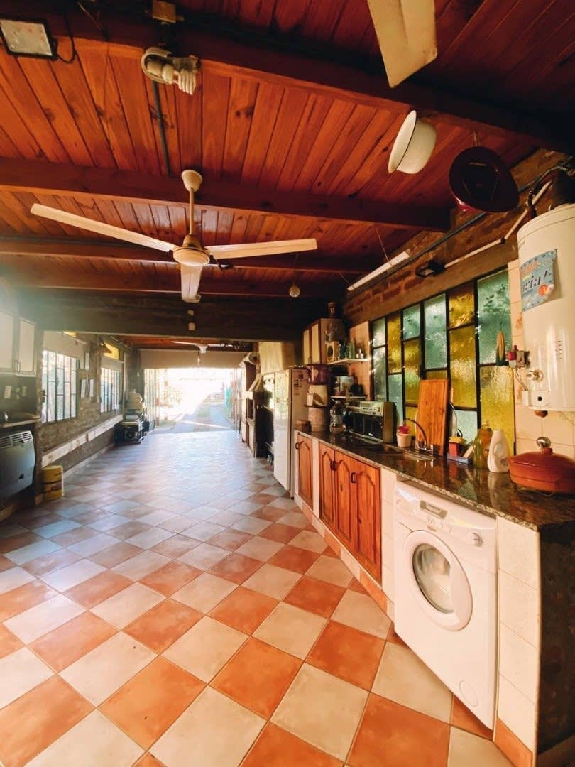 Garagge quincho Cochera – de 3.60 x 13mts con fogón parrilla instalaciones de cocina con agua caliente y fria, calefacción y alarma, apareado a esta construcción se encuentra un pequeño galpón de herramientas y un baño exclusivo para el quincho.