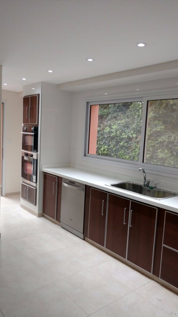 La cocina esta totalmente equipada, con mesada, bajomesada, placares de guardado, anafe, spar, lavavajilla, horno a gas, horno eléctrico, espacio para lavarropas.